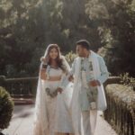 With nature and delicate florals surrounding them, they walked hand in hand.